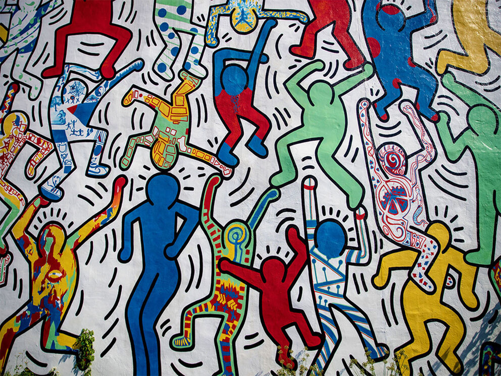 "Un giorno, viaggiando in metropolitana, ho visto un pannello che doveva contenere un messaggio pubblicitario. Ho capito subito che quello era lo spazio più appropriato per disegnare. Sono risalito in strada fino ad una cartoleria e ho comprato una confezione di gessetti bianchi, sono tornato in metropolitana e ho fatto un disegno su quel pannello. Era perfetto, soffice su carta nera; il gesso vi disegnava sopra con estrema facilità". Così Keith Haring comincia la sua carriera di street artist. Il murale “We are the youth”, raffigura figure danzanti delineate in nero su sfondo bianco. I contorni delle figure sono riempiti con blu, giallo, rosso e verde, a volte con un colore solido e talvolta con motivi e simboli. La sezione più a nord del murale, dipinta su una recinzione, contiene le parole "noi la gioventù: città bambini di Phila + NYC".