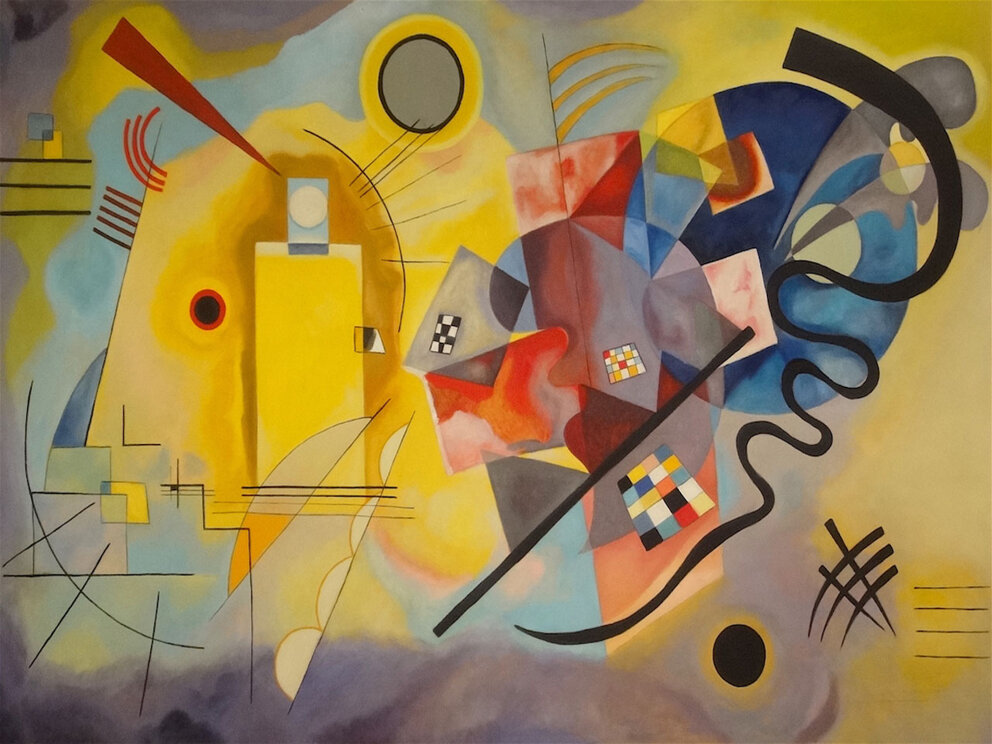 Uno dei temi principali della trattazione di Kandinsky riguarda il contrasto cromatico tra i colori primari rosso, giallo e blu. Ritorna l'accordo e la simbologia tra i colori primari e le figure geometriche Tutto è nel quadro: la ragione è ciò che è l'uomo, poiché esso è l'insieme, è il giallo e il blu, il volto e il pensiero. L'opera d'arte è il risultato di un'esperienza emotiva e psicologica, grazie alla quale l'artista interpreta soggettivamente la realtà. Nasce così il quadro in questione: “Rosso Giallo e Blu”.