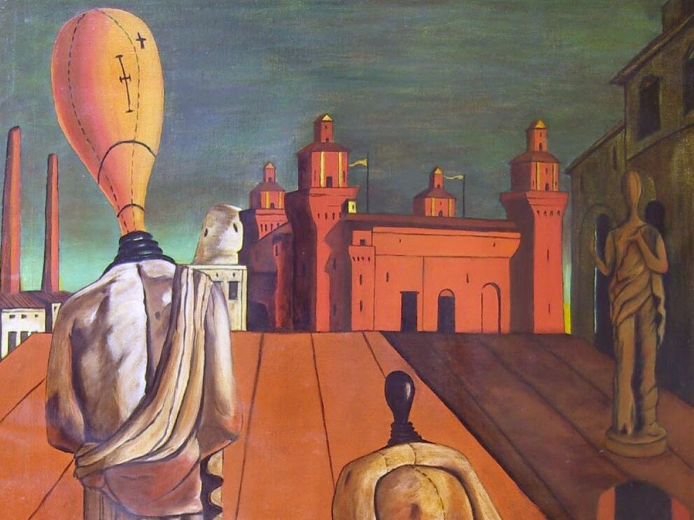 Le muse inquietanti è un dipinto del pittore italiano Giorgio de Chirico realizzato fra il 1917 e il 1919. L'opera raffigura uno spazio aperto sul quale sono situate in primo piano due statue classiche: una eretta, e l'altra seduta su un basamento. Entrambe le figure, che hanno la testa di un manichino da sartoria, sono circondate da diversi oggetti, mentre sullo sfondo vi è una terza statua maschile. La prospettiva è errata e converge sullo sfondo nella rappresentazione del Castello Estense di Ferrara, qui affiancato ad una fabbrica. Sebbene l'immagine sia nitida, l'atmosfera è irrealmente silenziosa e straniante, anche grazie ai colori caldi ed alla luce statica e intensa. “Nel quadro, certo, il climax di angoscia e di disperazione rinasce dalle figure senza