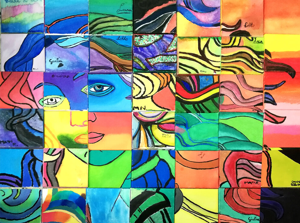 Icona del cinquecento, La Venere di Botticelli è sempre stata un emblema di bellezza e di purezza, ma in arte il bello non è perfezione quanto quello che viene colto dall'occhio dell'osservatore. In questa rivisitazione, i piccoli autori hanno realizzato una rivisitazione della Venere di Andy Warhol in stile Pop Art. Hanno saputo cogliere l'essenza della linea nera e della forma, la bellezza del colore che, pur non essendo aggraziato come nella tecnica del Botticelli richiama il concetto di festa e serenità, forza e determinazione.