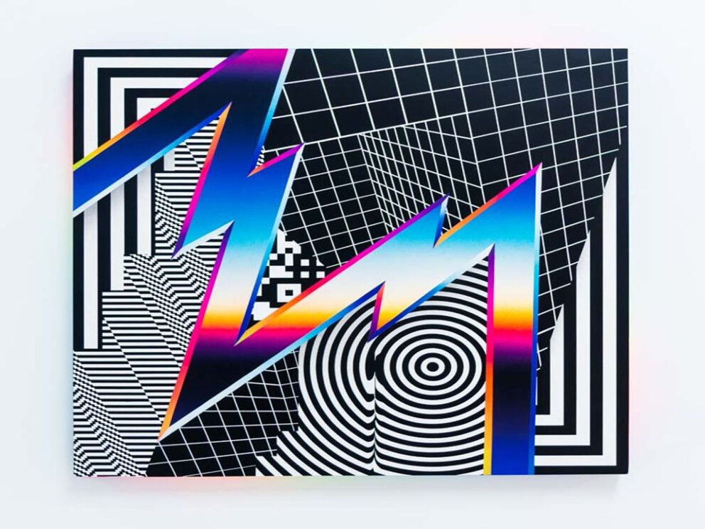 Dynamic phenomena di Felipe Pantone, considerato uno degli artisti street art internazionale più influente. Egli va oltre la nozione di spazi esterni e collega progetti: affreschi monumentali, dipinti, sculture e installazioni complesse. Influenzato dall'era di internet, immagina i suoi progetti geometrici sul software di modellazione riprendendo l'estetica della creazione 3D che riproduce in formato XXL o su tele portando alla vita sovrapposizioni di installazioni basate sull'illusione ottica sconvolgente che ha quasi l'effetto di un'esplosione o una scossa elettrica. Le linee imprimono la direzione del moto e punti, legature ed altre notazioni musicali, ne marcano il carattere e il ritmo. Il giallo è eccitante e centrifugo, il blu rilassante e centripeto, il verde è stabile e pacificante, il rosso vivificante.