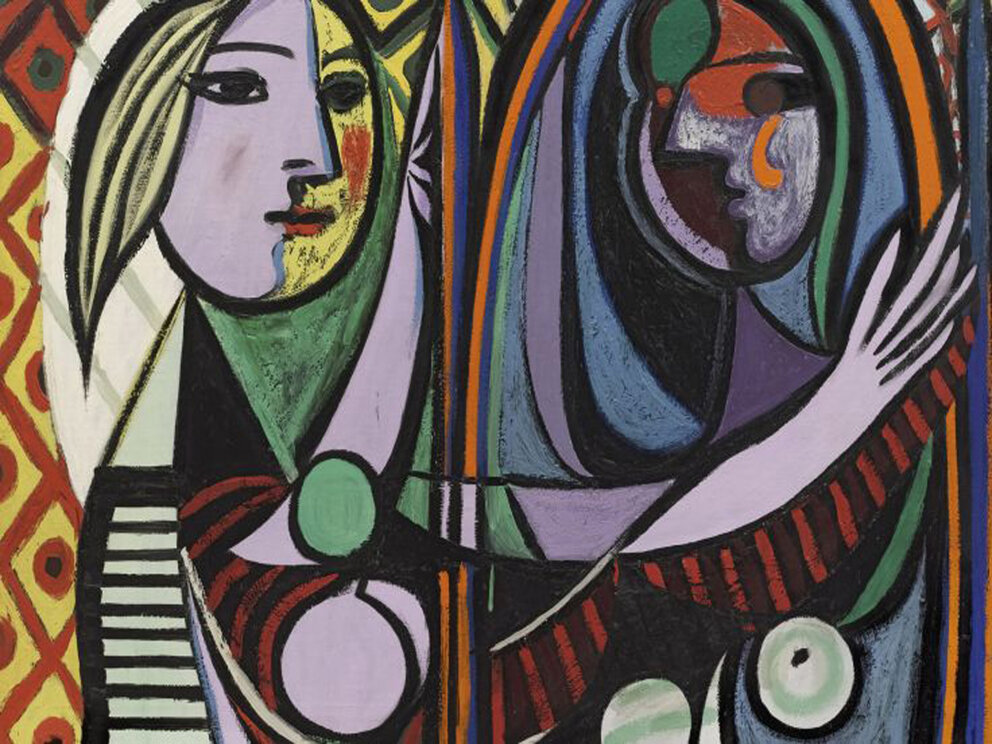 di maschera, ed allude ai momenti felici con Picasso, mentre l’altro lato del volto è giovane e privo di imperfezioni. La donna al di qua dello specchio rappresenta colei che Picasso vede e ama: duplice, ma reale; mentre il riflesso restituito dallo specchio mostra come la ragazza vede se stessa: infelice, impaurita, invecchiata e timorosa del tempo che passa e che le porta via la giovinezza.