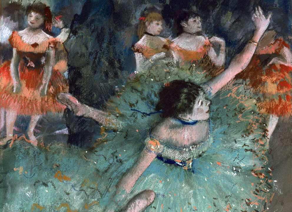 Edgar Degas autore della Ballerina Verde, amava ammirare le evoluzioni fisiche delle ballerine, l'eleganza, la concentrazione. Il suo scopo è mostrare una realtà mutevole in movimento e che cambia continuamente. In ogni suo quadro cambia la prospettiva dell'osservatore, in questo caso dipinge il quadro come se lo spettatore fosse in un piano rialzato rispetto alla ballerina.